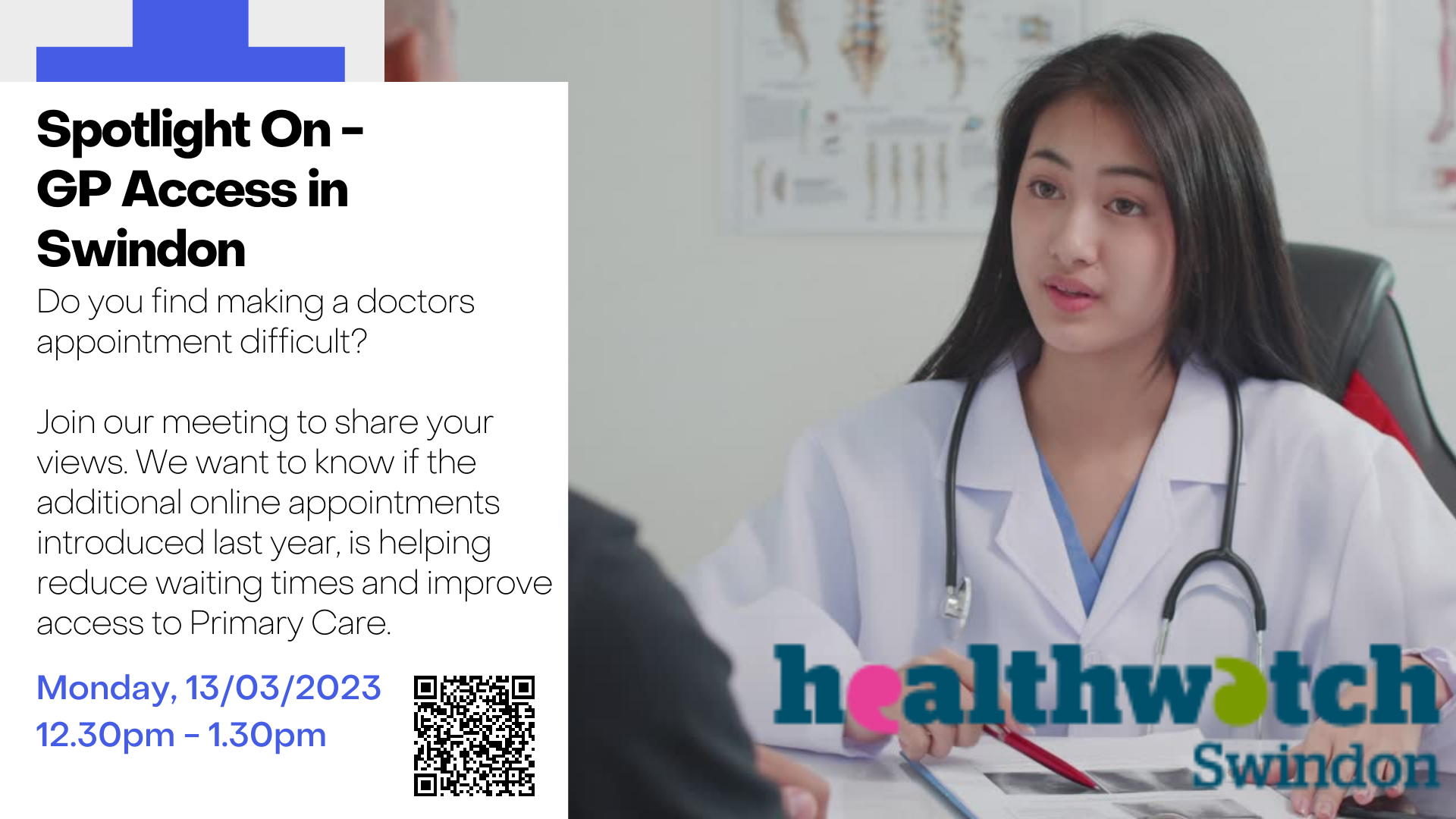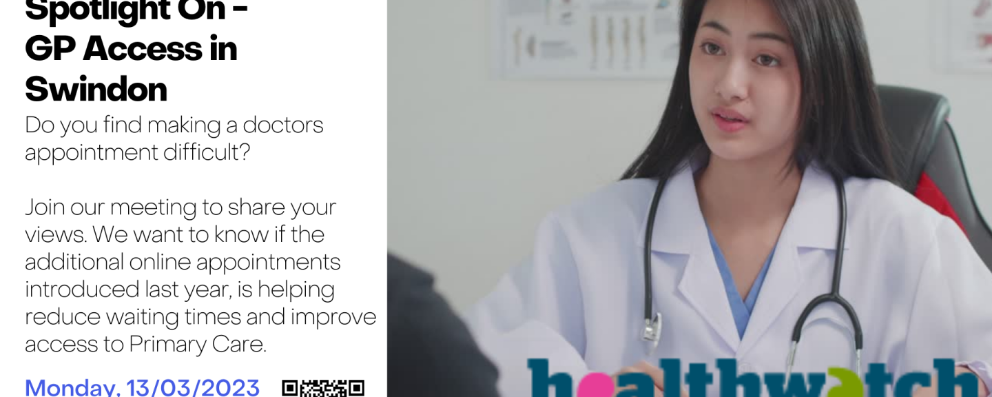 Healthwatch Swindon would like to invite you to join our online feedback session, providing you with an opportunity to share your experiences regarding accessing your GP surgery.